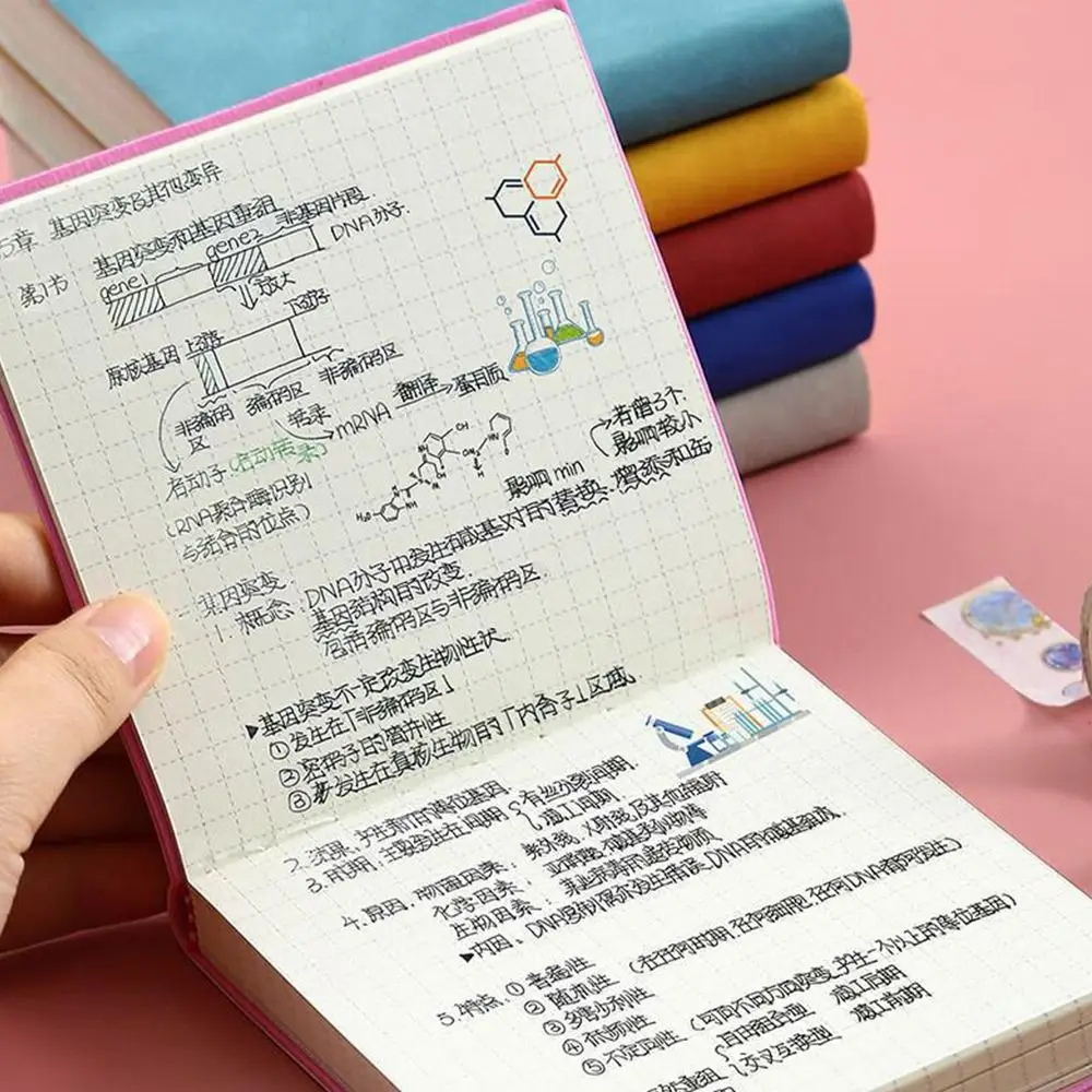 Grid Page Notebook PU Leather Mini Portable Pocket Planner